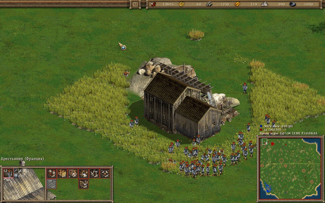 Еду можно добывать по разному, я решил сделать как всегда по своему. В ЗА главным добытчиком являются крестьяне, особенно у европейцев, особенно у испанцев или немцев. Замечал много раз одну особенность, у новичков главным образом, когда толпа крестьян бегает по полю и постепенно вымирает.